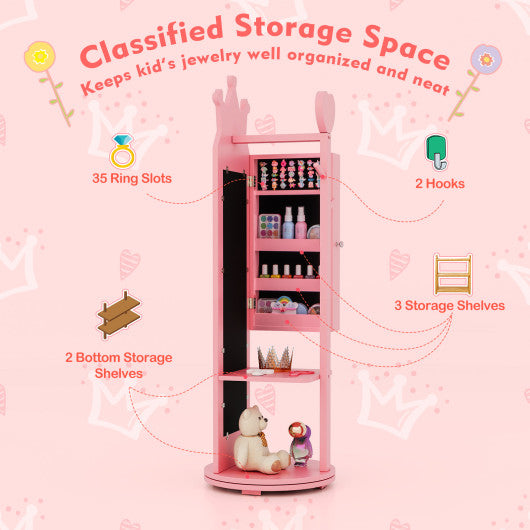 Free-Standing Full Length Mirror Kids Jewelry Armoire Cabinet-Pink