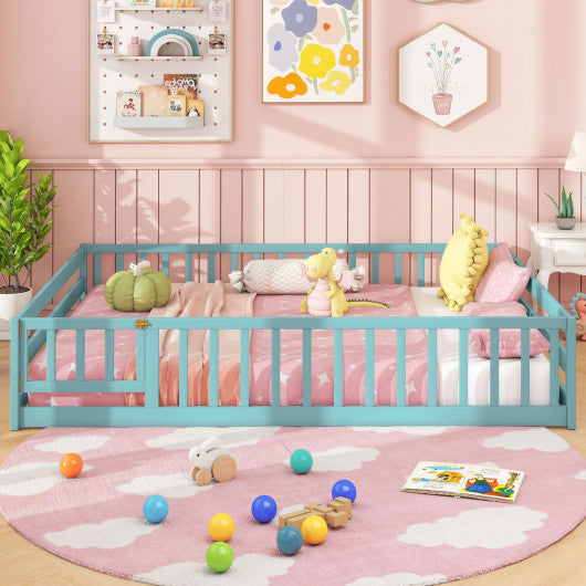 Full Size Floor Bed with Full Length Safety Guardrails-Dark Green
