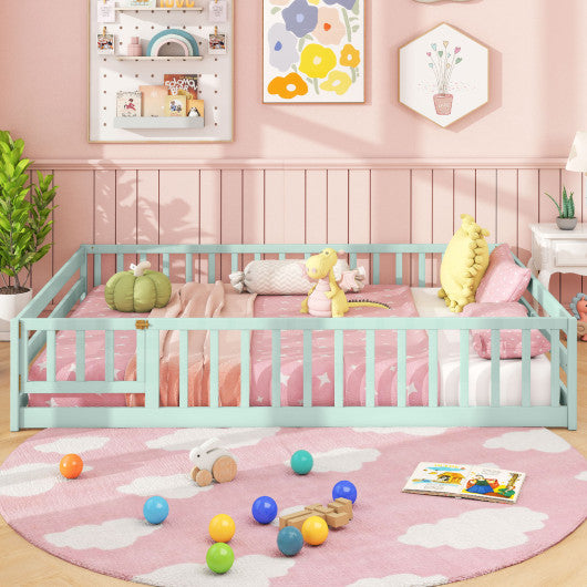 Full Size Floor Bed with Full Length Safety Guardrails-Light Green