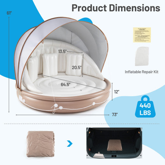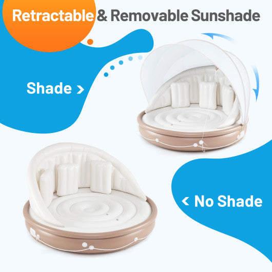 Inflatable Canopy Island Tanning Pool Lounger Float with Retractable Canopy
