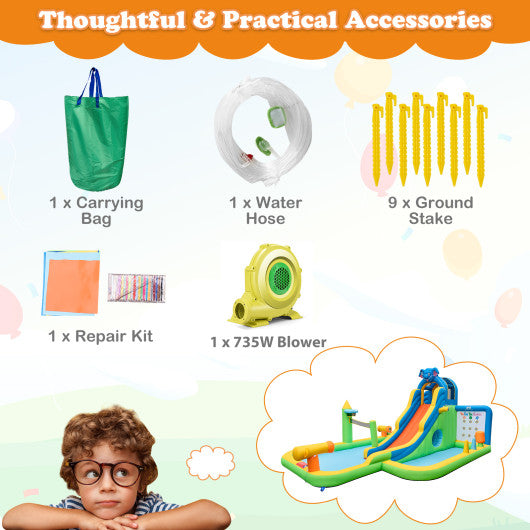 Inflatable Water Slide Giant Water Park 9-In-1 for Kids Backyard Fun with 735W Blower