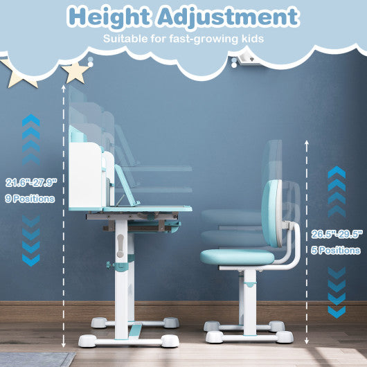 Kid's Study Desk and with Tilt Desktop and Pen Holder-Blue