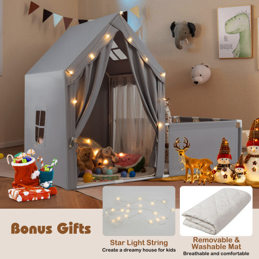 Kids Play Tent with Playpen 2-in-1 Toddler Playhouse with Yard-Grey