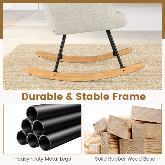 Linen Nursery Rocking Chair with High Backrest and Padded Armrests-White