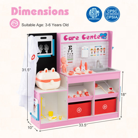 Play Doctor's Office Wood Medical Center Toy Set with Examine Region-Pink