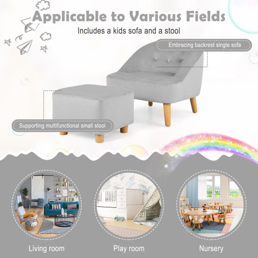 Soft Velvet Upholstered Kids Sofa Chair with Ottoman-Gray