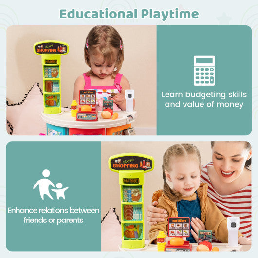Supermarket Playset for Kids 76 PCS Pretend Play Grocery Store Set with Shopping Cart-Blue