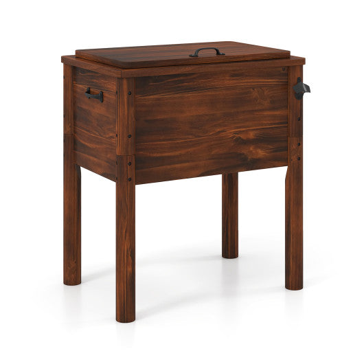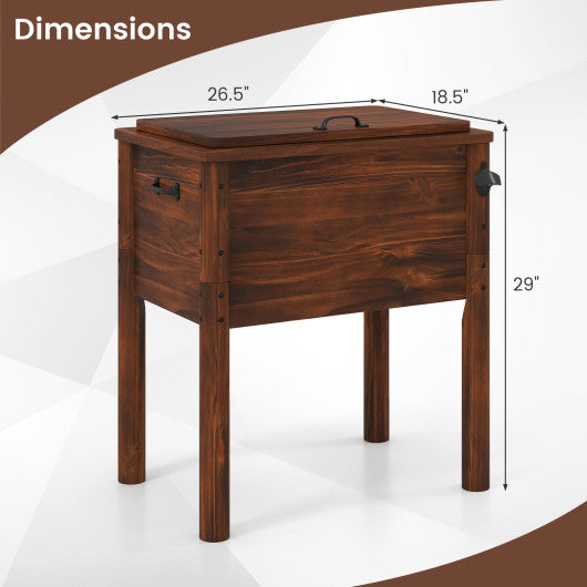 Wooden Patio Cooler with 3 Handles and Bottle Opener-Brown