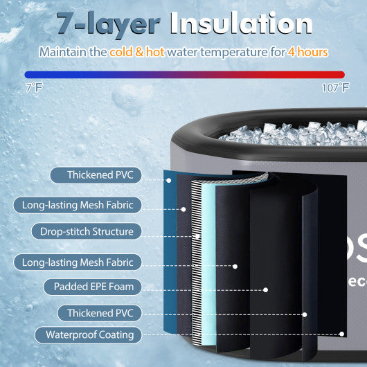 XL 129 Gal Oval Ice Bath Tub with Cover and Hand Pump for Athletes-Gray